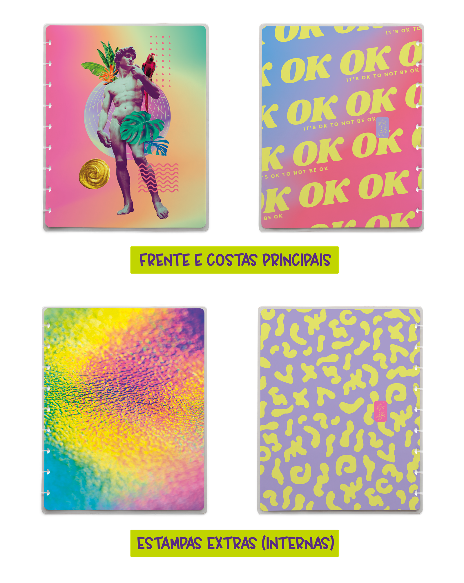 Mmonte o seu caderno da forma que melhor funcionar pra você. Adicione miolos diferentes ou até mesmo outros acessórios, como divisórias, inserts e estojos.