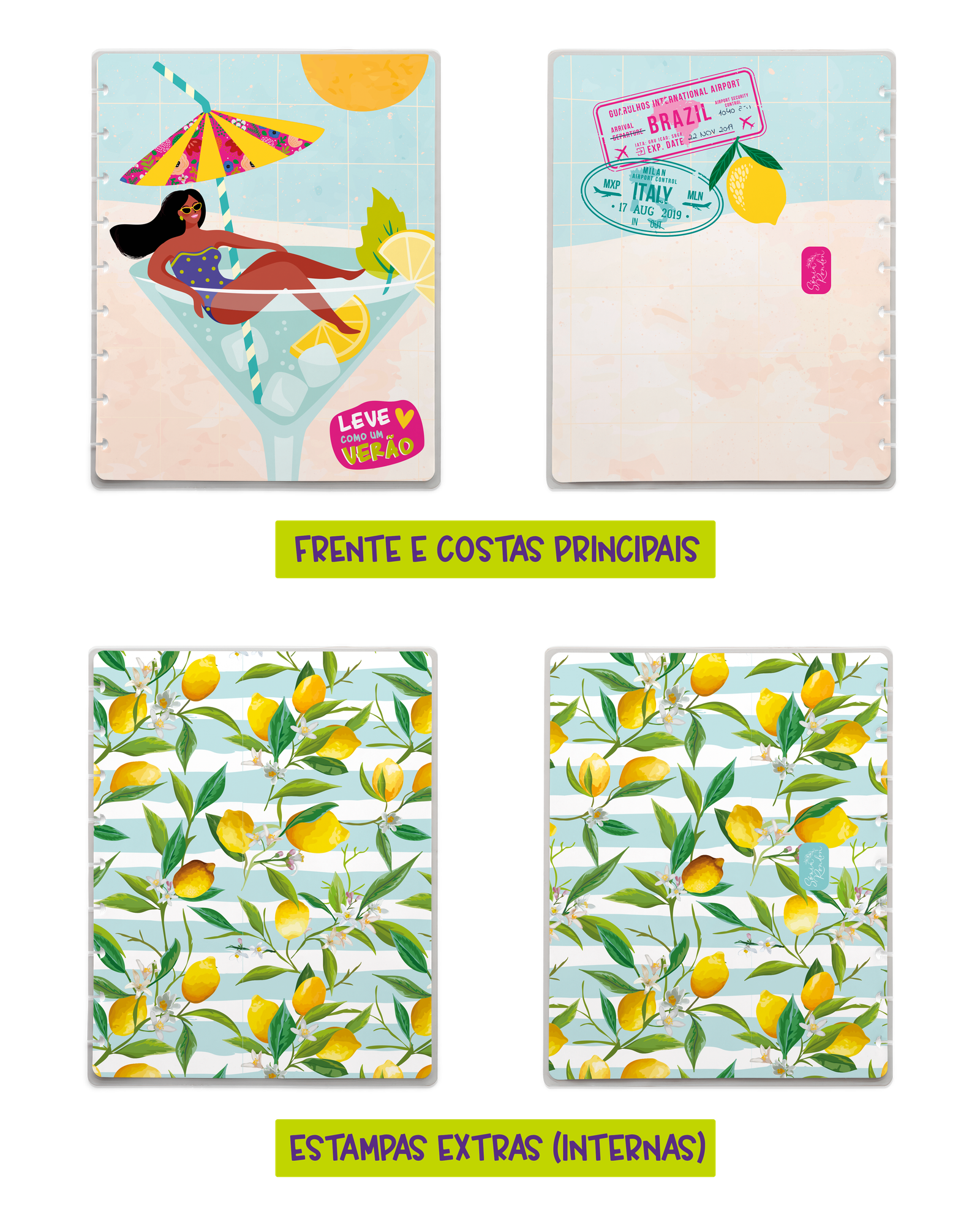 Médio: 20×27 cm / 9 Discos / Sua folha tem 18×25 cm. - Dupla face: Nossas capas e contra-capas possuem estampas na frente e no verso, logo vc tem a possibilidade de trocar a posição das 4 estampas, para a frente ou para o verso.