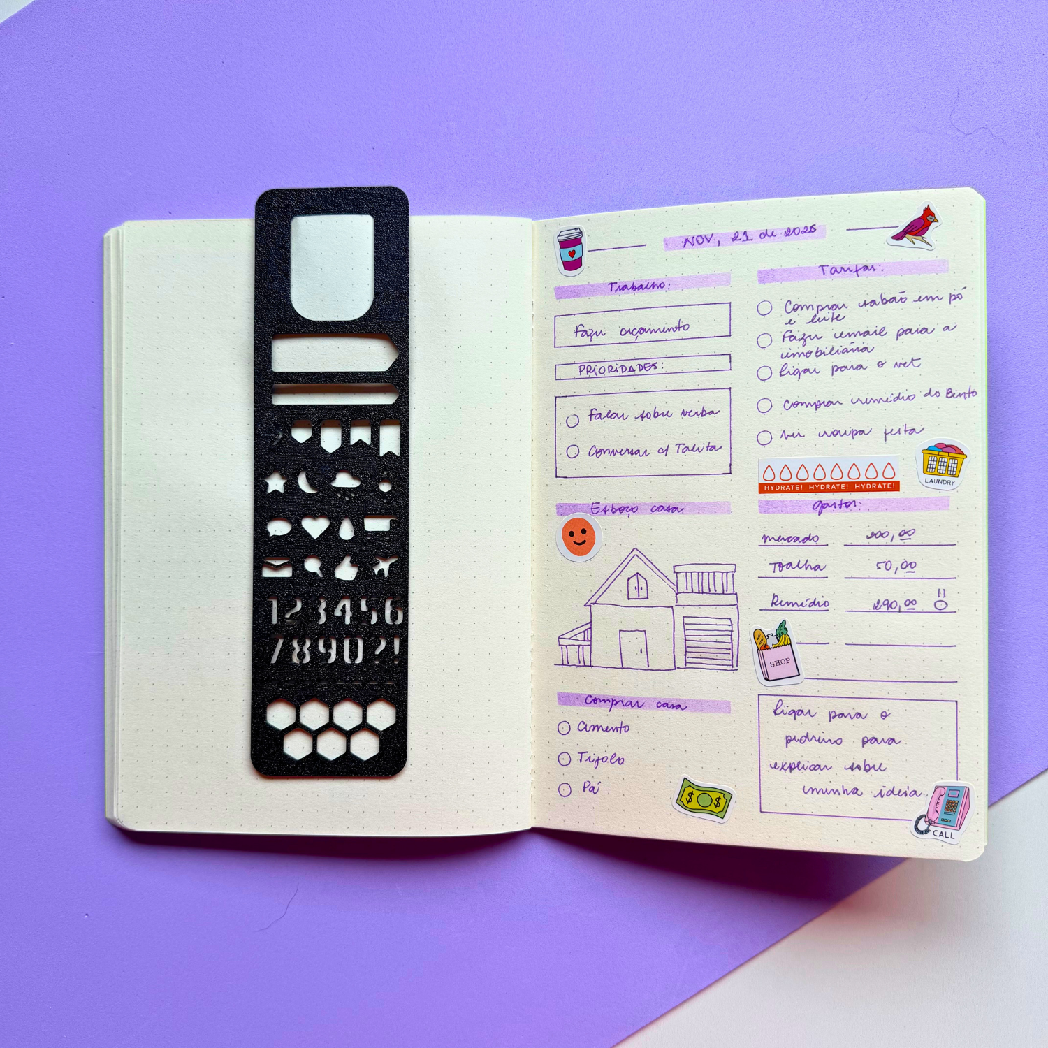 • Uso: perfeito para títulos, destaques, palavras-chave e personalização de páginas no planner, bullet journal ou projetos criativos. Use-o também como marcador do seu livro ou planner.