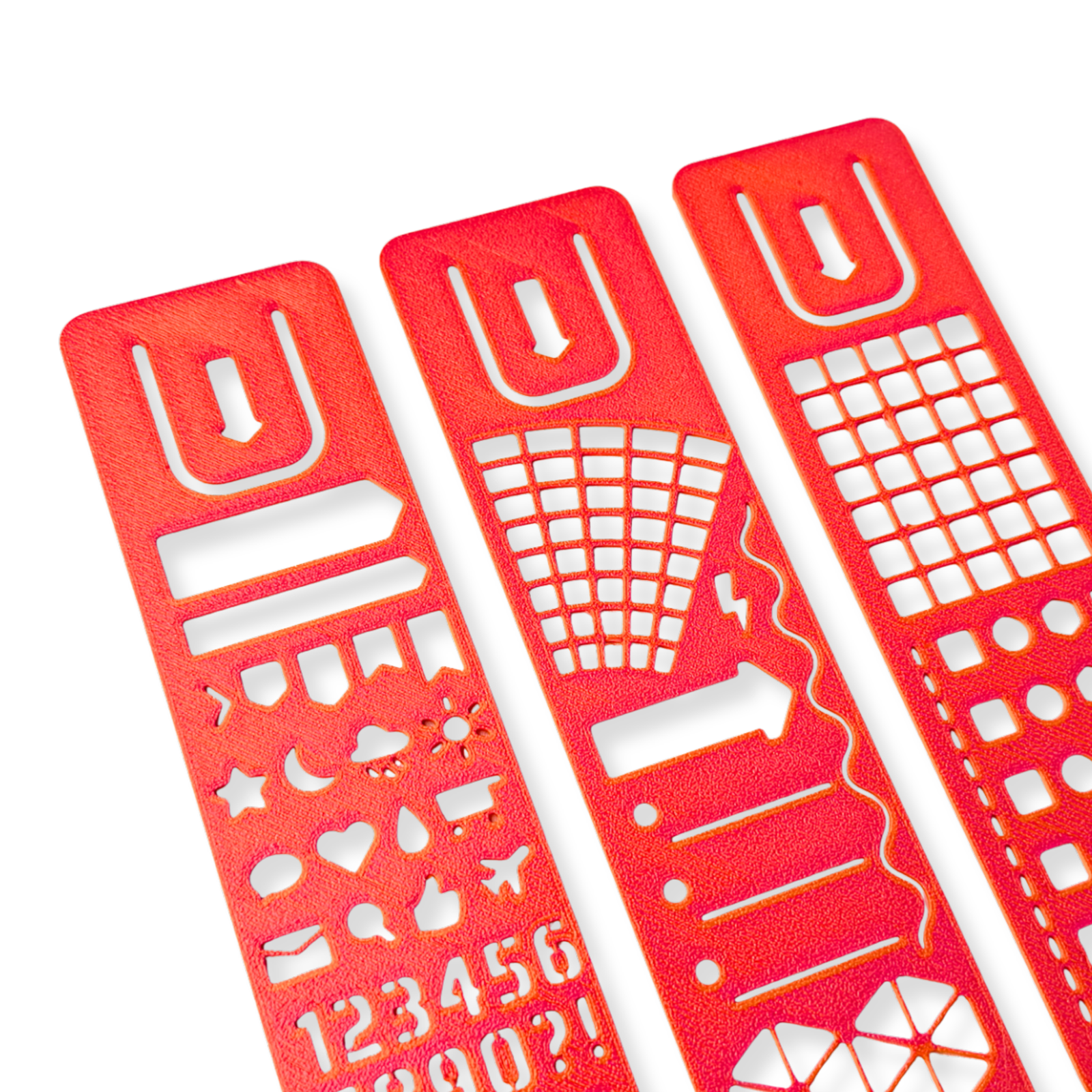 • O que vem no kit: kit com 3 réguas com símbolos, números e boxes variados.